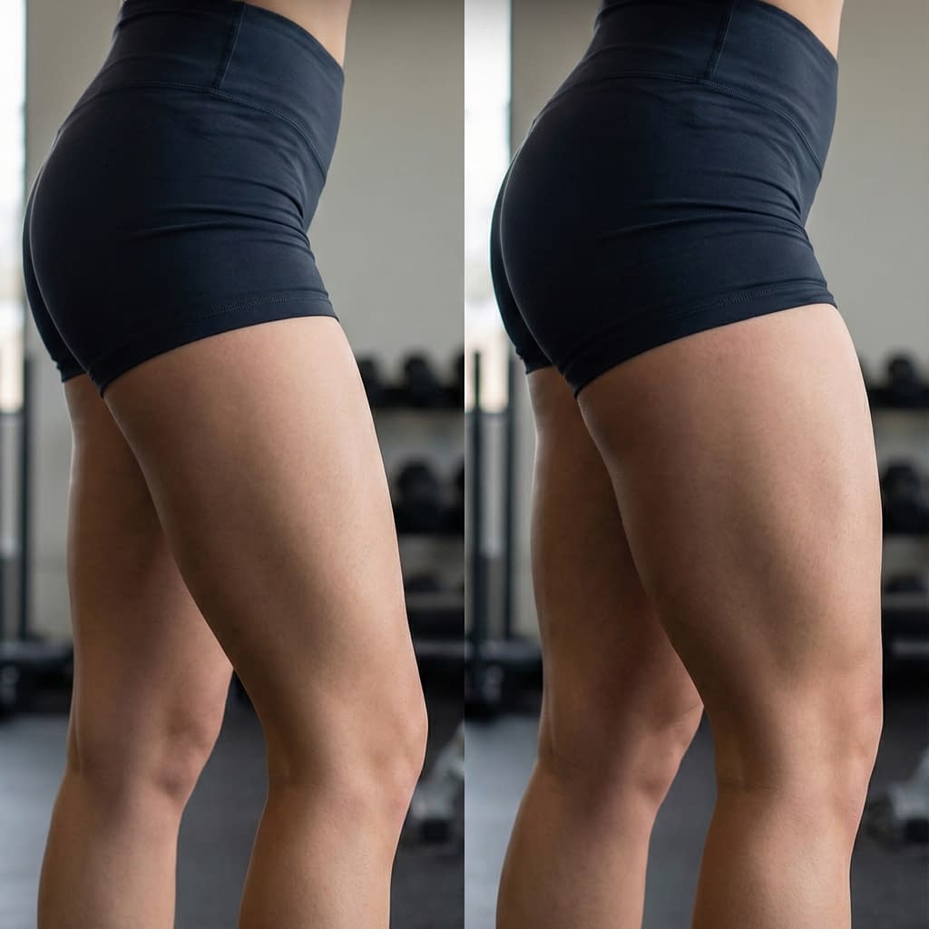 Thicker, stronger thighs help with everyday movement, sport performance and injury prevention. Strong quads and hamstrings stabilize your knees and hips, let you jump higher, sprint faster, carry heavier loads, and reduce the chance of strains. Beyond function, building muscle increases metabolic health and (if that’s your goal) visibly increases size and shape in the upper legs.
