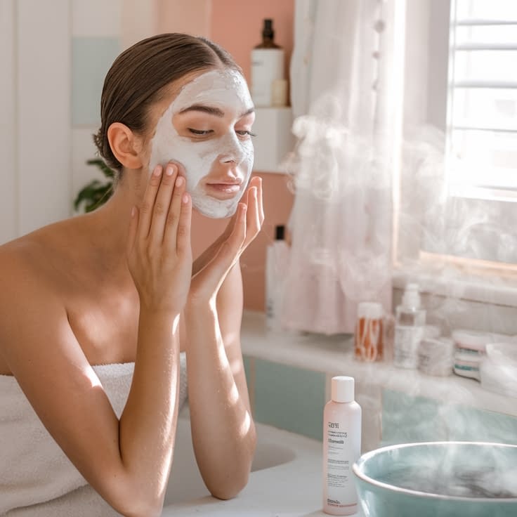 3. Weekly deeper treatment: A clay mask or a peel-equivalent mask (AHA/BHA mask) once weekly can draw out sebum and smooth texture. Rinse as instructed.