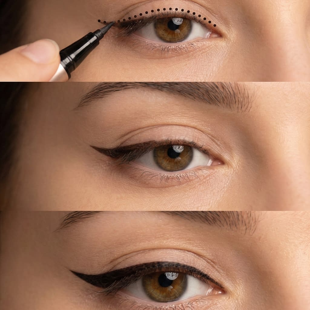 Eyeliner is a small tool with huge impact when tailored to your natural eye shape. Start with the general rules, pick the tools you love, and practice the step-by-step technique for your eye type. Work slowly — thin inner lines, build outward, and adjust wing angle to your bone structure. Most looks are rescued by small fixes (smudge, sharpen, set), and the best liner is the one that makes your eyes feel like you — only more awake, lifted, and defined.