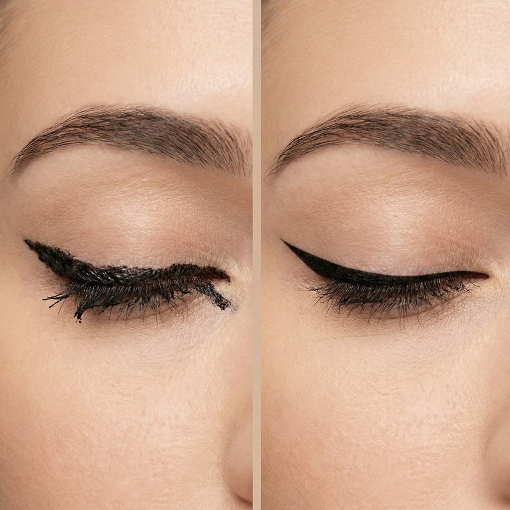 • Liner transferring to the lid (hooded eyes) → use waterproof formulas, set with matching powder shadow, and keep liner very close to lashes.