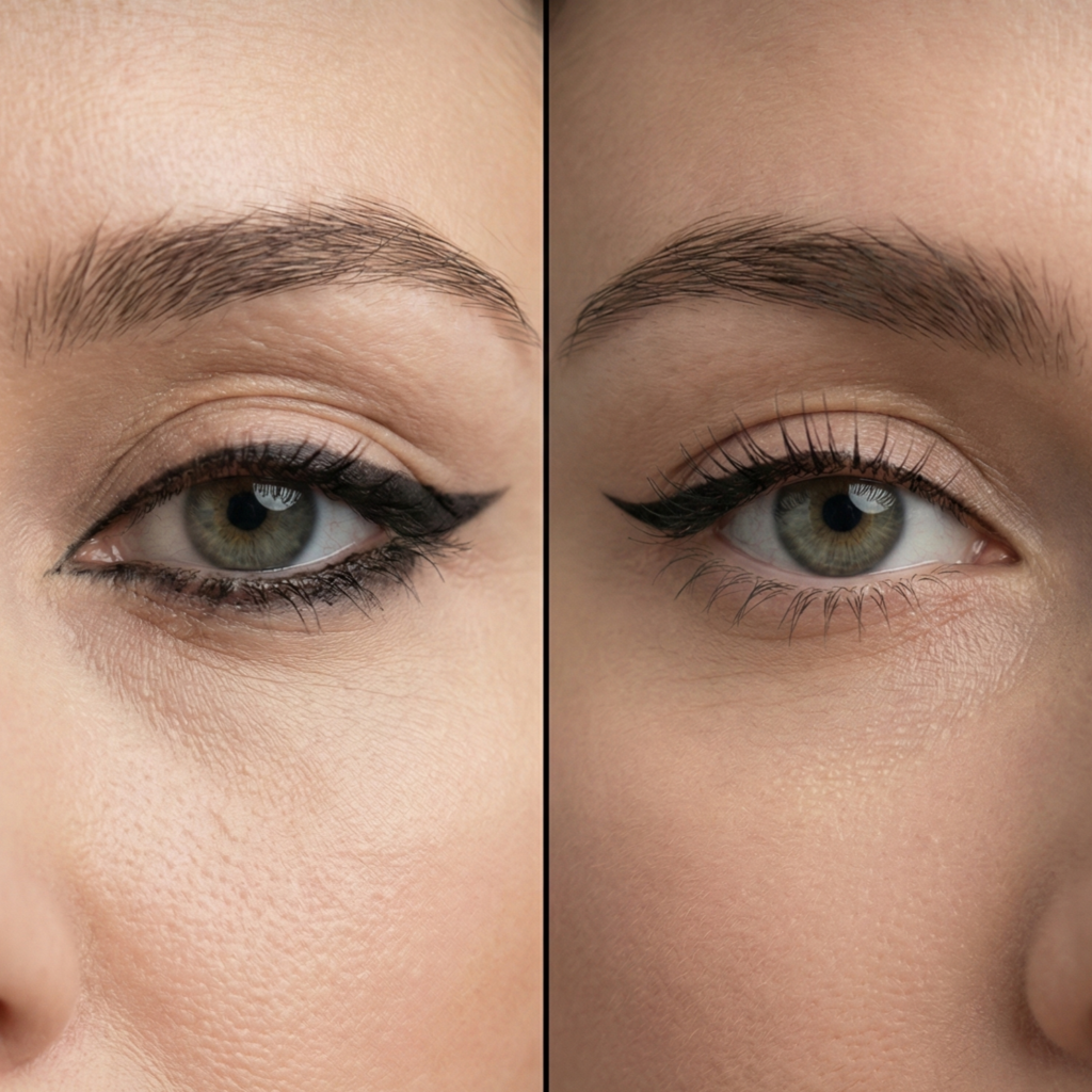 • Liner transferring to the lid (hooded eyes) → use waterproof formulas, set with matching powder shadow, and keep liner very close to lashes.