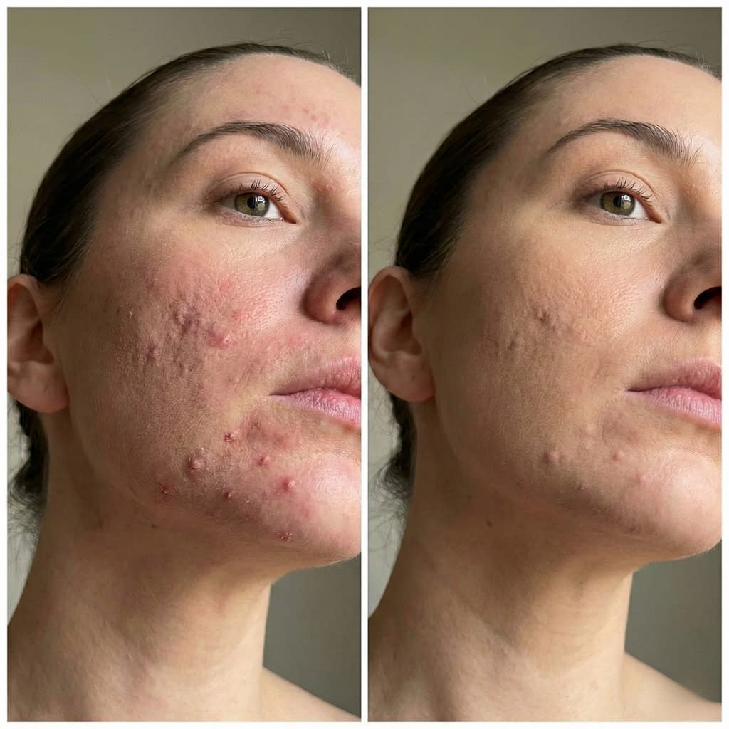 - Spot-treat acne with your usual prescribed or OTC spot product (benzoyl peroxide, salicylic acid, azelaic acid) as advised — avoid layering too many actives at once.