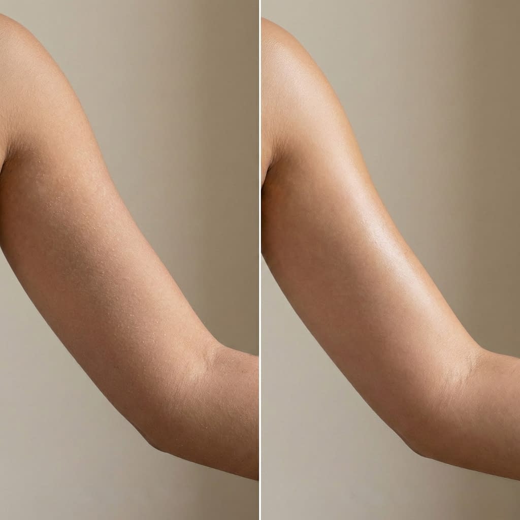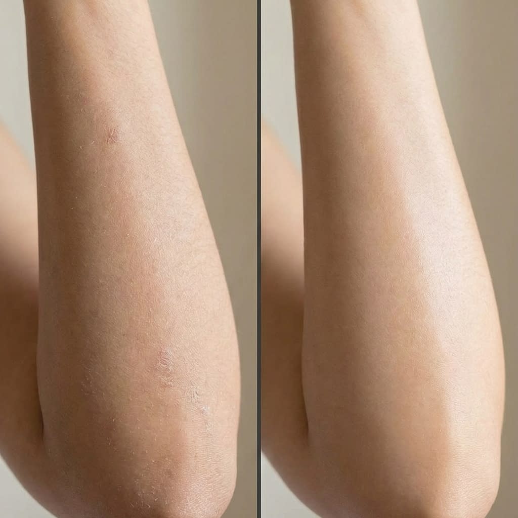• Elbows/knees: 1–2× weekly gentle physical (sugar scrub or soft pumice) plus nightly moisturizer.