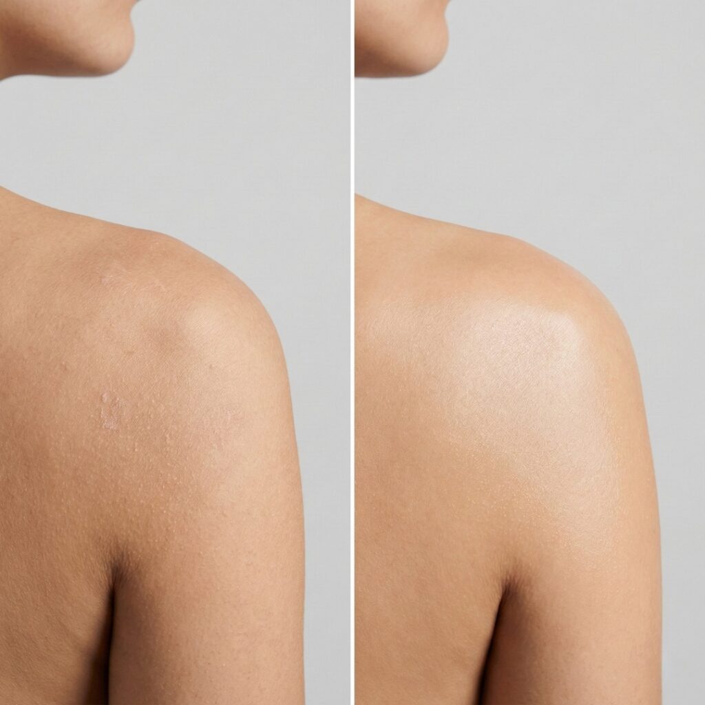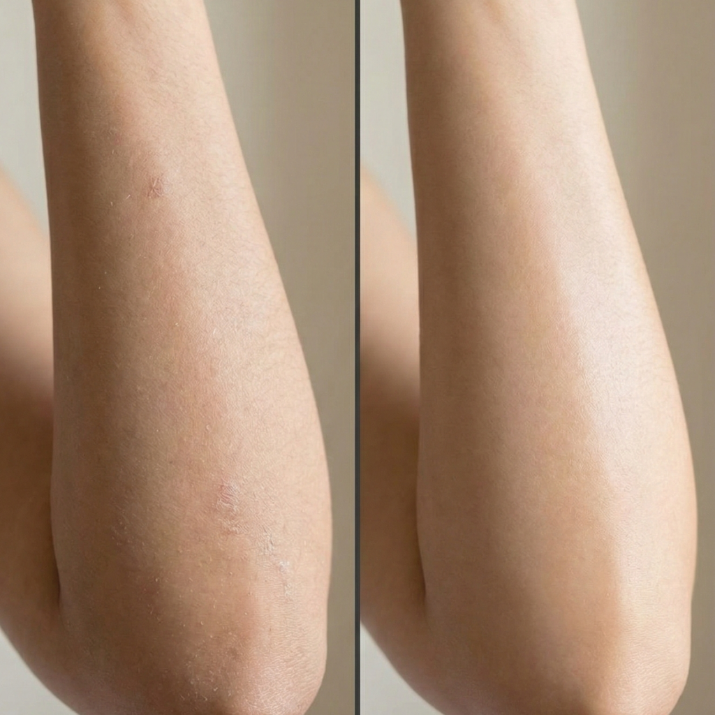 - Elbows/knees: 1–2× weekly gentle physical (sugar scrub or soft pumice) plus nightly moisturizer.