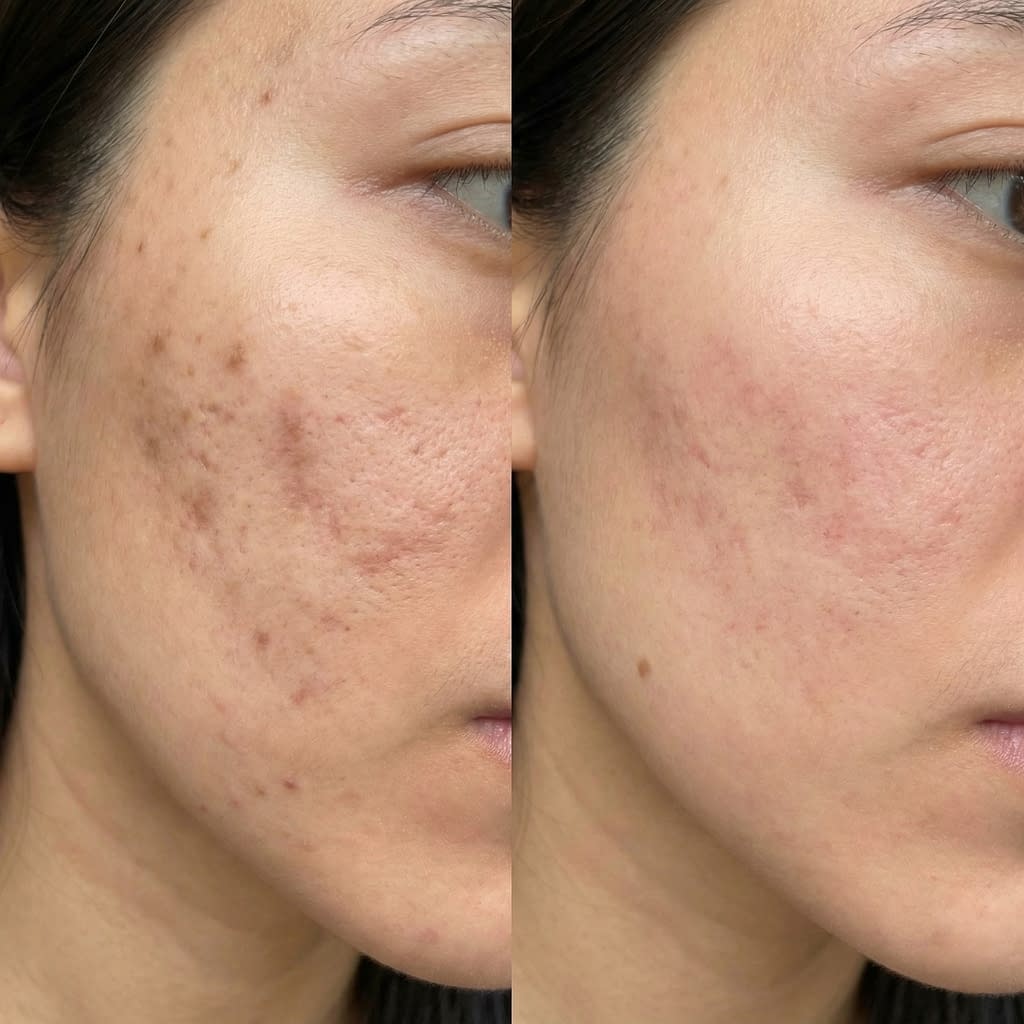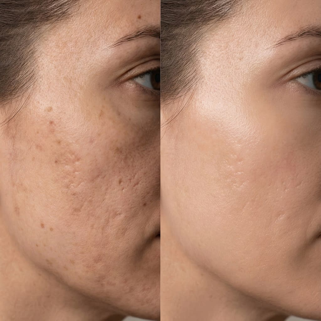 - Subcision + filler: for tethered rolling scars, subcision releases fibrous bands; fillers can temporarily lift depressions.