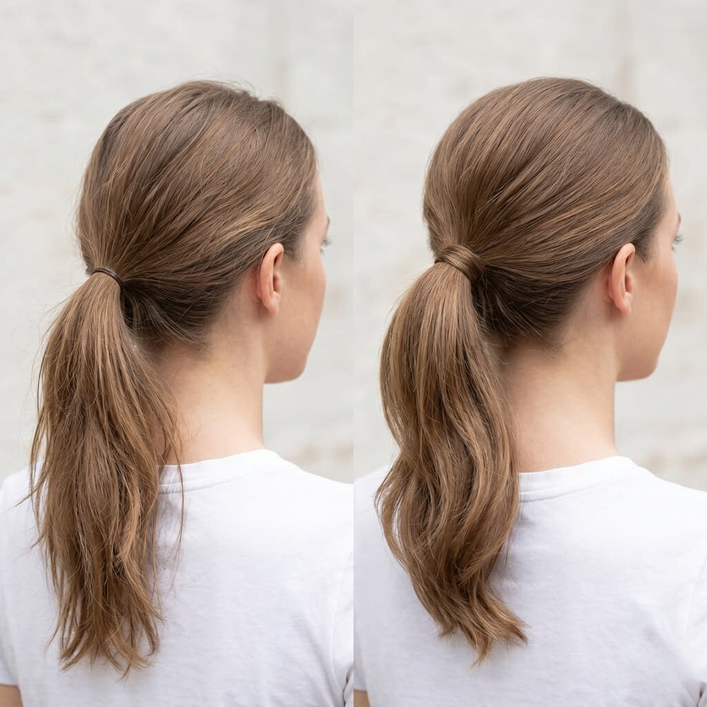 Even if the hair is flat, a few styling changes can make the ponytail appear thicker and more intentional. The trick is to create the illusion of fullness rather than relying only on the natural density of the hair.
