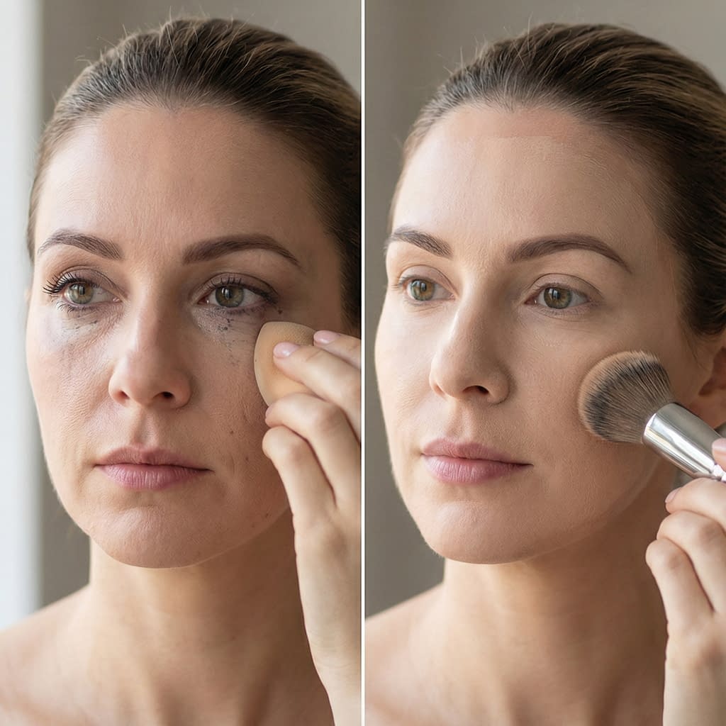 - If under-eye concealer is creased or patchy: lightly pat a little lightweight concealer only into the crease and set; avoid heavy layers that settle into lines.