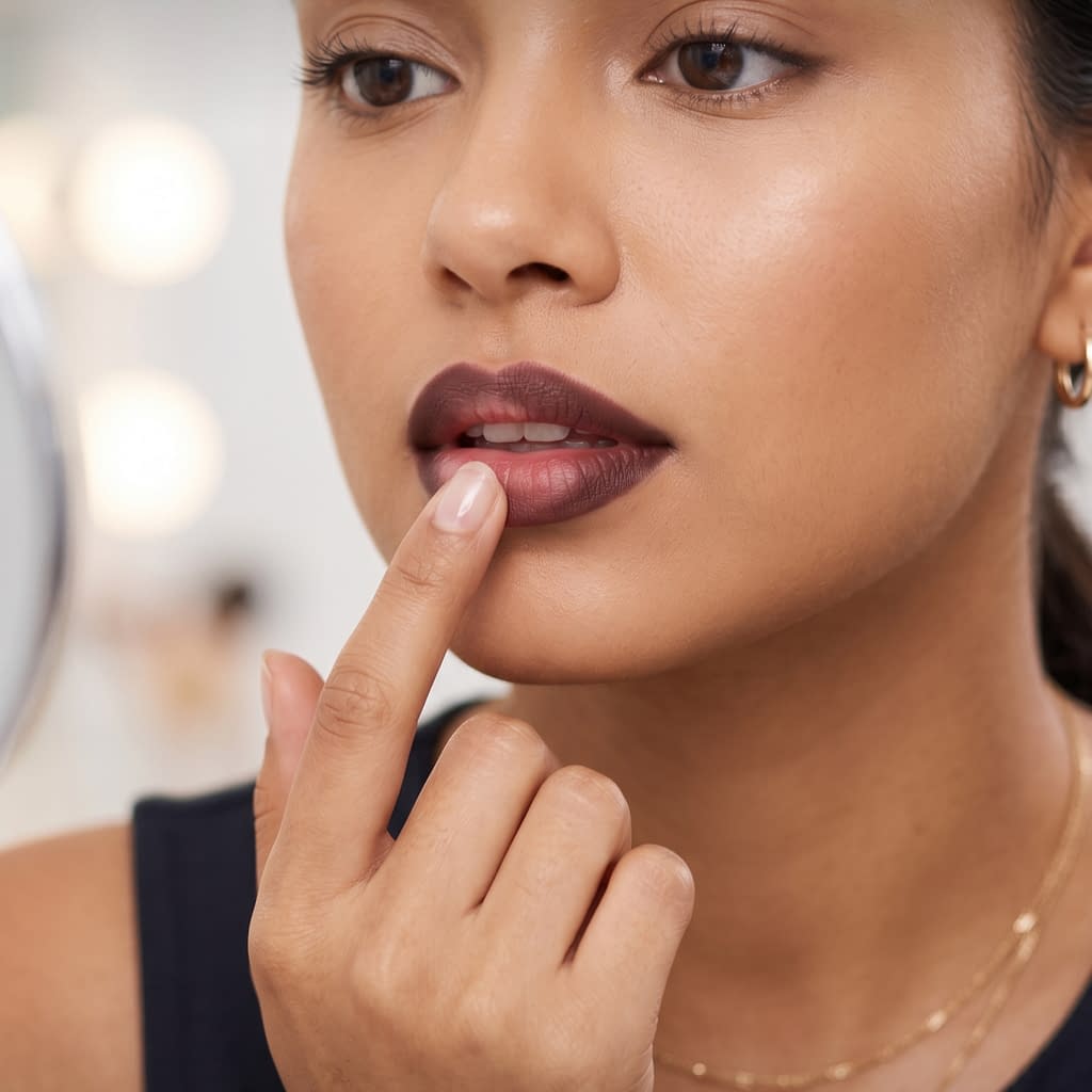 A dark lipstick becomes more flattering when the lips underneath are smooth, hydrated, and softly defined.