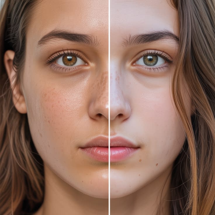 There’s a big difference between healthy brightening and aggressive skin-bleaching. Natural brightening aims to reduce sun-induced darkening, fade uneven pigmentation, and improve skin brightness by supporting your skin’s repair systems. Harsh chemical lightening (unregulated hydroquinone, steroids, etc.) can damage the skin barrier, thin skin, and cause rebound darkening. Prioritize methods that preserve the skin’s health — prevention (sunscreen), gentle renewal (exfoliation, retinoids as advised by a pro), hydration, and nutrition.