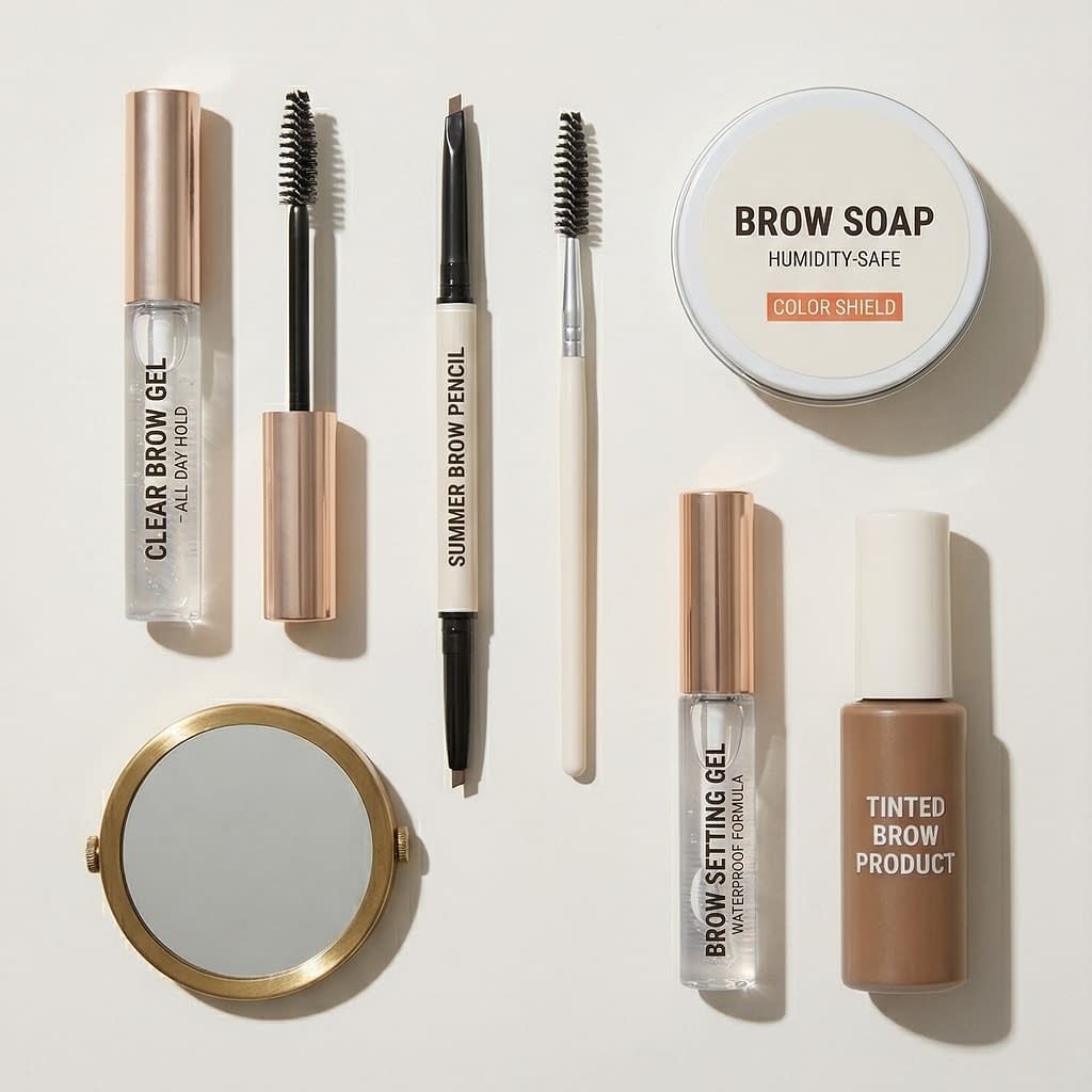 Using the right product combination ensures your brows survive sweat, oil, and sticky weather.