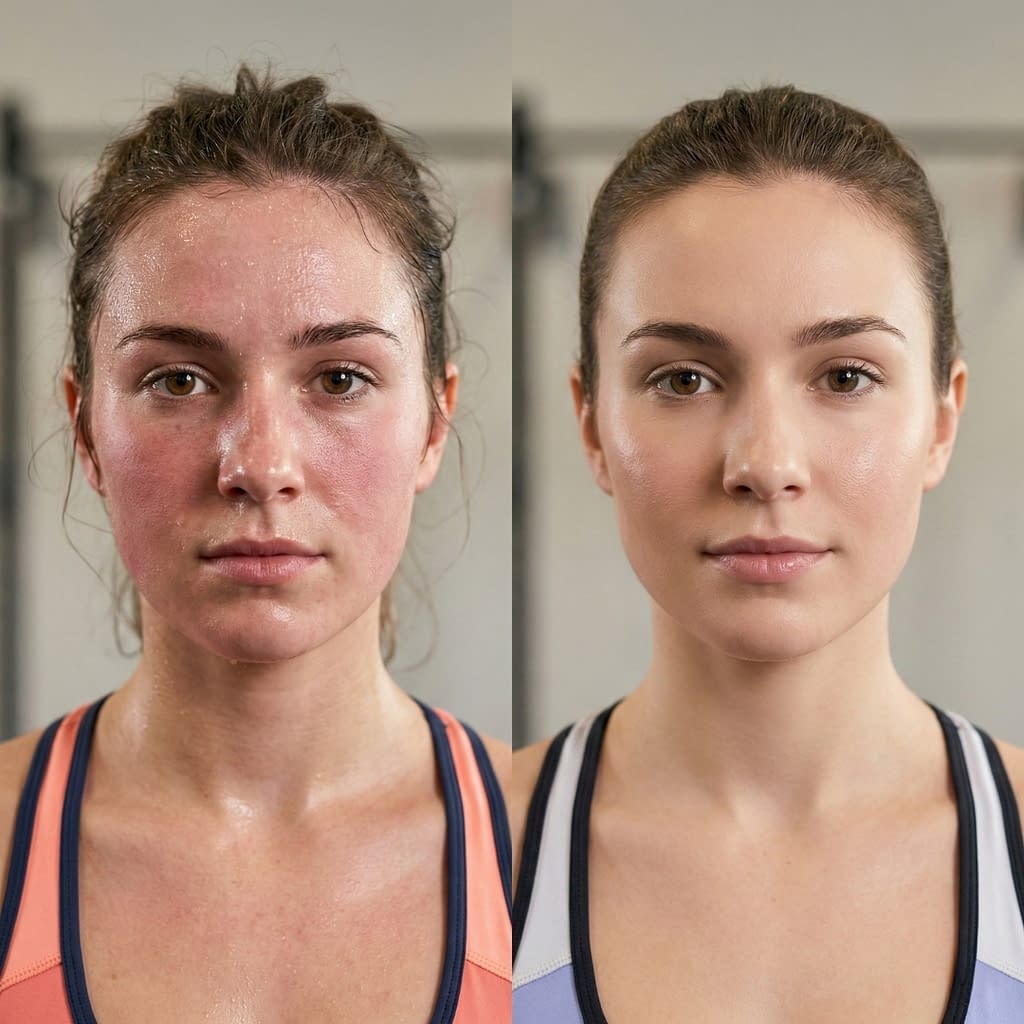 Exercise raises core temperature and makes you sweat, which is great — but sweat mixed with oil, dead skin, and bacteria can sit on the skin and clog pores. Add friction from clothing (or a backpack), headphones, or repeated rubbing (like running), and the skin’s outer layer gets abraded and inflamed. For some people exercise also temporarily increases hormones and blood flow that can make oil production ramp up. All of that can cause two common problems after training: acne mechanica (breakouts from friction/heat) and clogged-pore acne from residue left on skin.