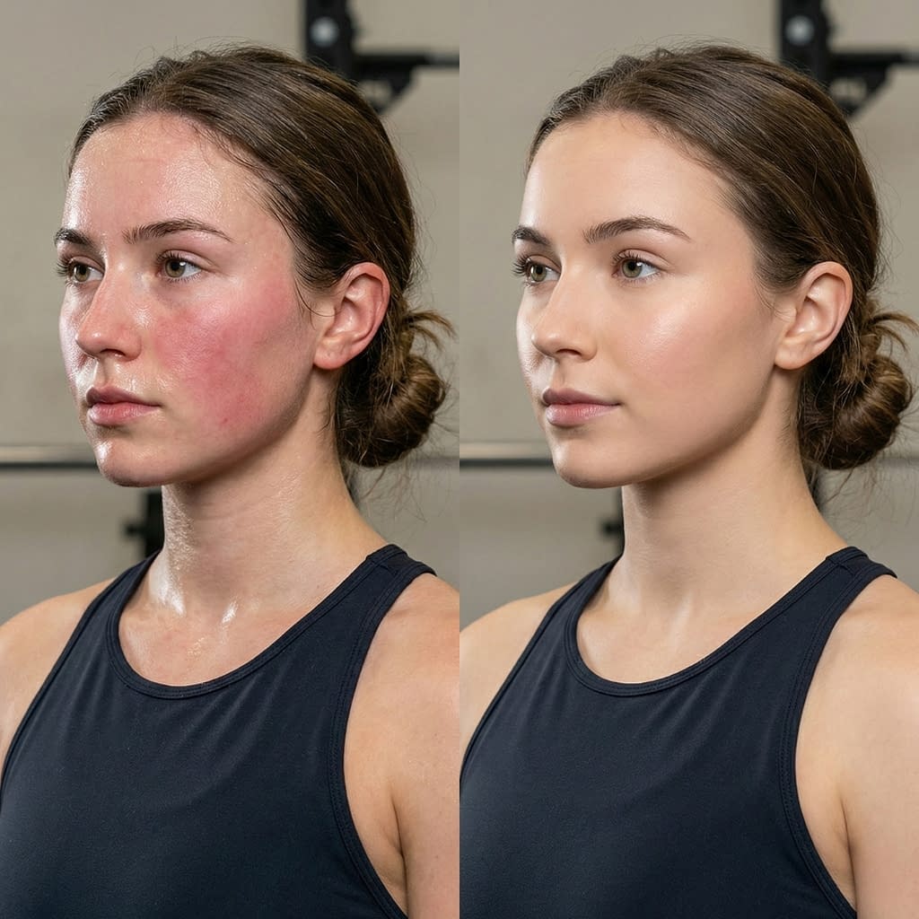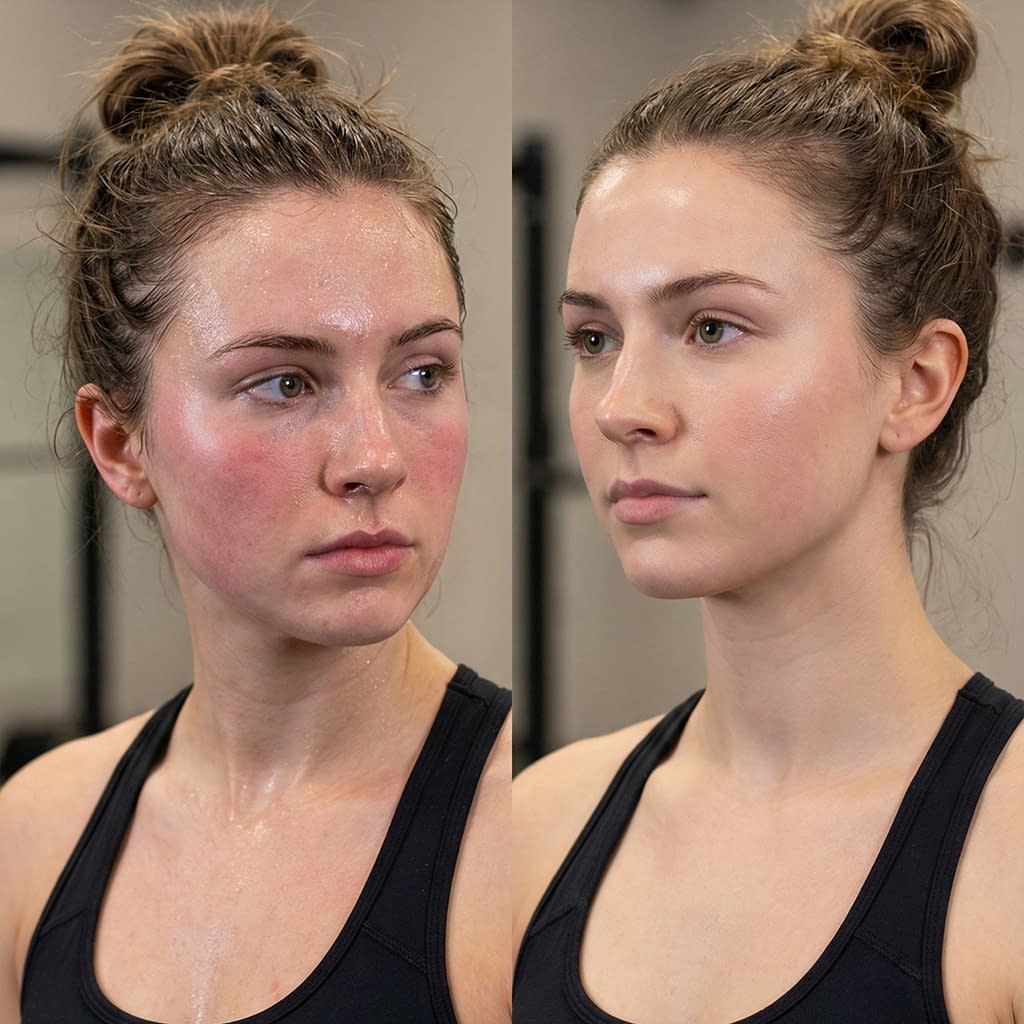 Avoid jumping into very hot showers right after training; lukewarm water is gentler on the skin and less likely to provoke oil rebound or redness.