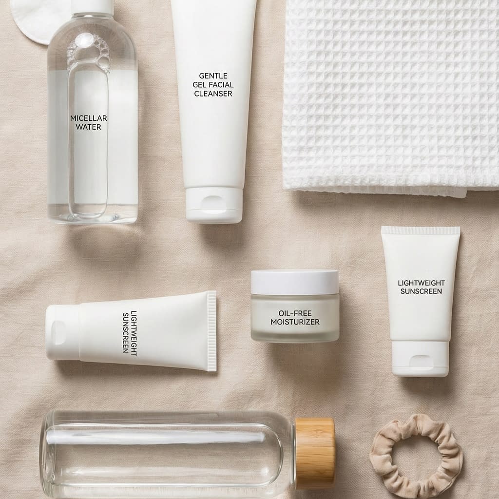 - Use micellar water or cleansing wipes (gentle, fragrance-free) as a temporary rinse for the face if you can’t shower.
