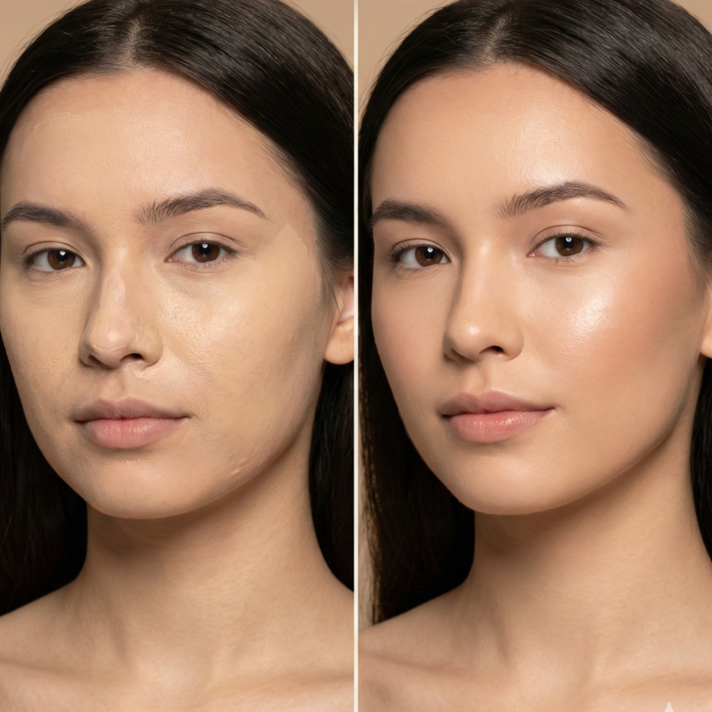 - Thin layers: blend each thin layer fully before deciding whether to add more. Multiple thin layers look skin-like — one thick layer looks makeup-y.