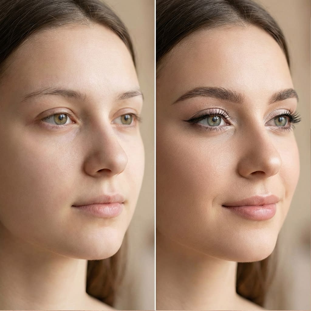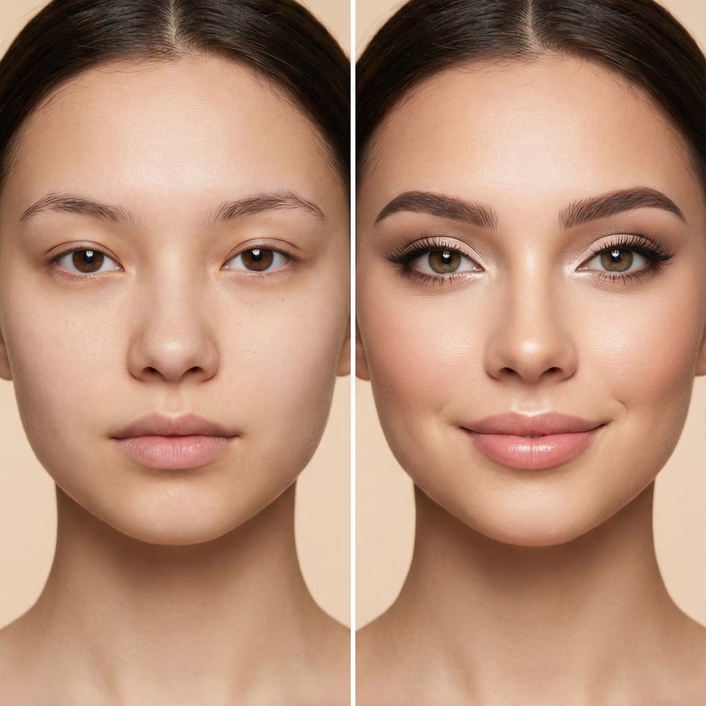 - Brows: groom and softly fill; highlight under arch.