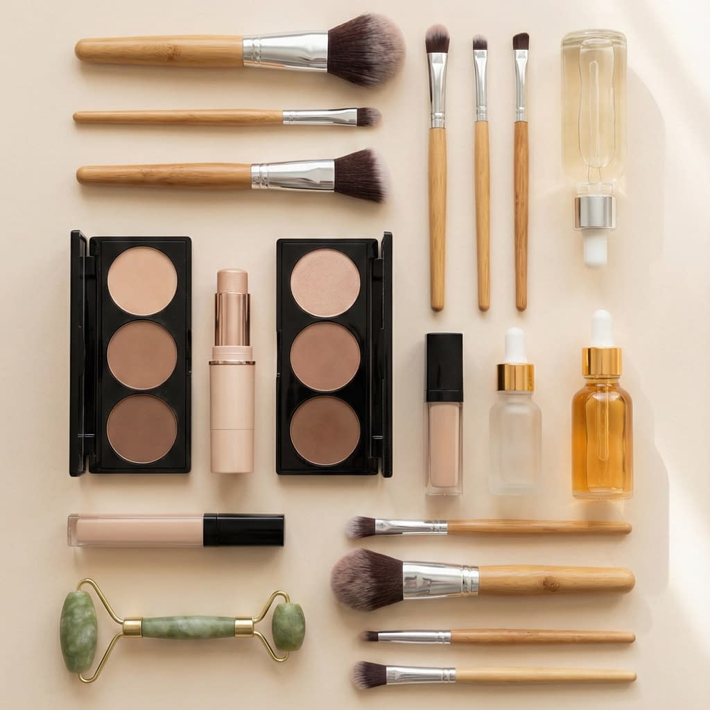 - A small fluffy blending brush to soften contour edges quickly.