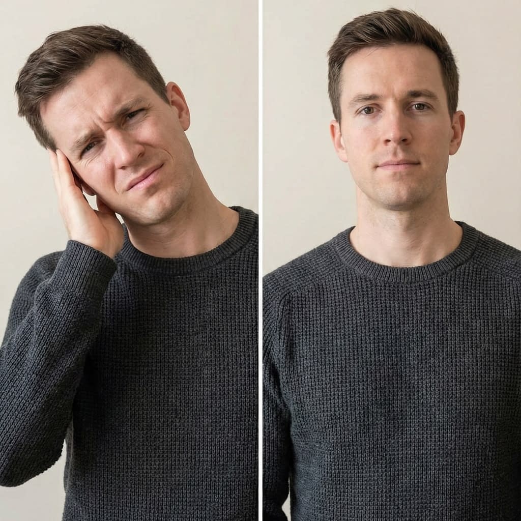 Moisture trapped in the ear increases irritation risk even in winter. After showering or sweating, tilt your head, gently tug the earlobe to straighten the canal, and blot the outer ear — do not probe inside. For stubborn trapped water, lie on your side with the affected ear down for a few minutes or hold a warm (not hot) hair dryer at arm’s length, moving continuously for a short time to evaporate residual moisture.