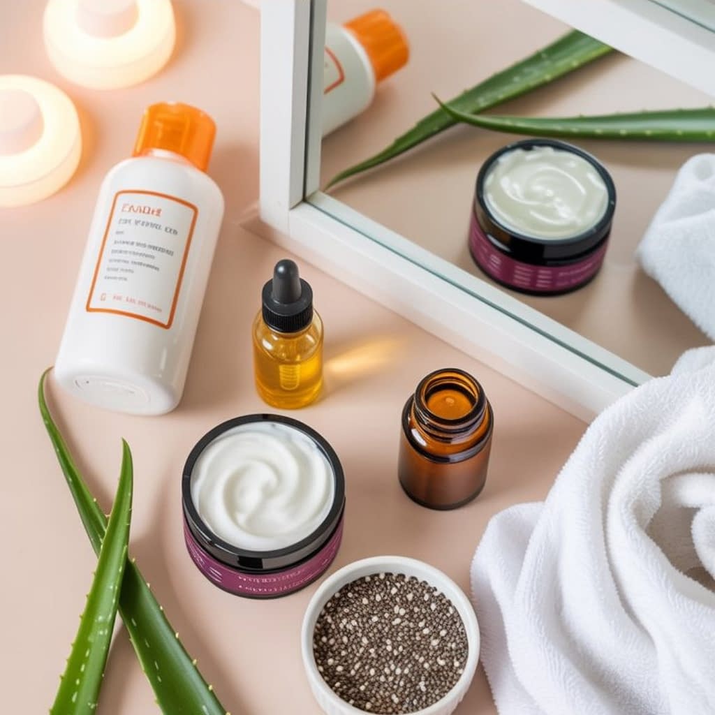 - Aloe Vera Gel – Hydrates and increases collagen.