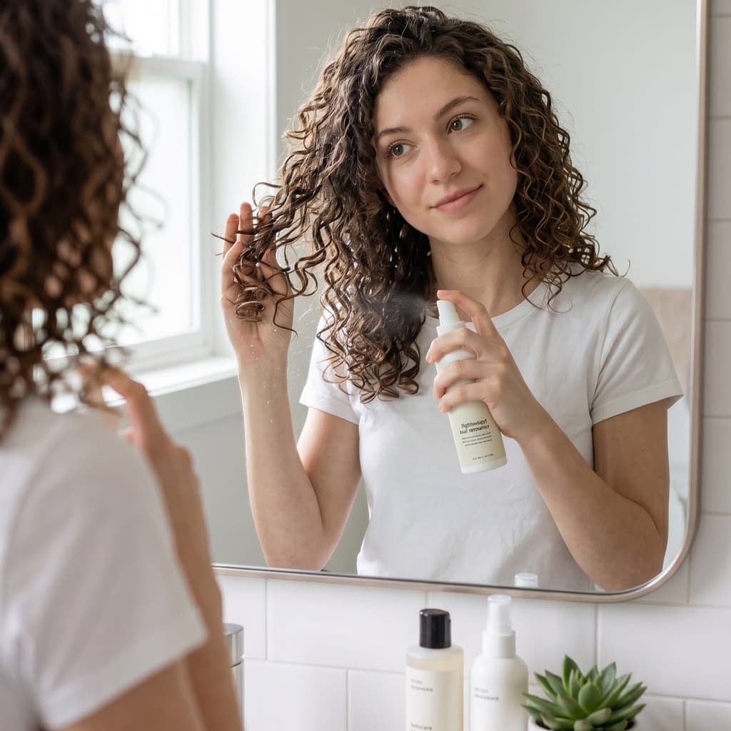 The goal of a curl refresh is to reintroduce moisture, reactivate product, and reshape the curl pattern without removing everything from the hair. The most effective method is usually a light mist of water combined with a small amount of leave-in conditioner or curl refresher.