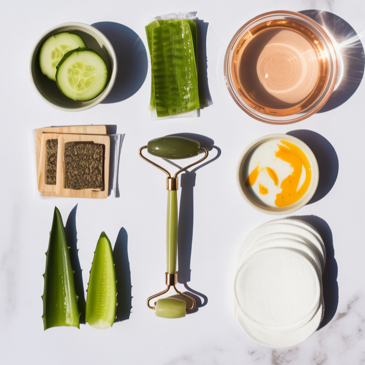 - Cucumber slices: cool in the fridge and apply for 10–15 minutes. They provide a mild cooling and soothing effect.