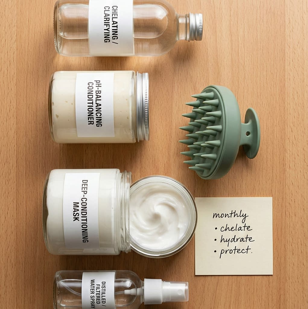 - Avoid daily shampooing in very hard water; use gentle co-washing or a mild cleanser between clarifying washes.