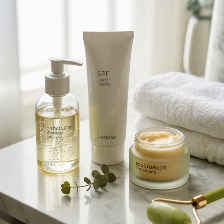 - PM: gentle cleanse → retinoid (start 2 nights/week) or AHA/BHA on alternate nights → hydrating moisturizer. Rotate to avoid irritation (don’t layer strong acids + retinoid the same night initially).