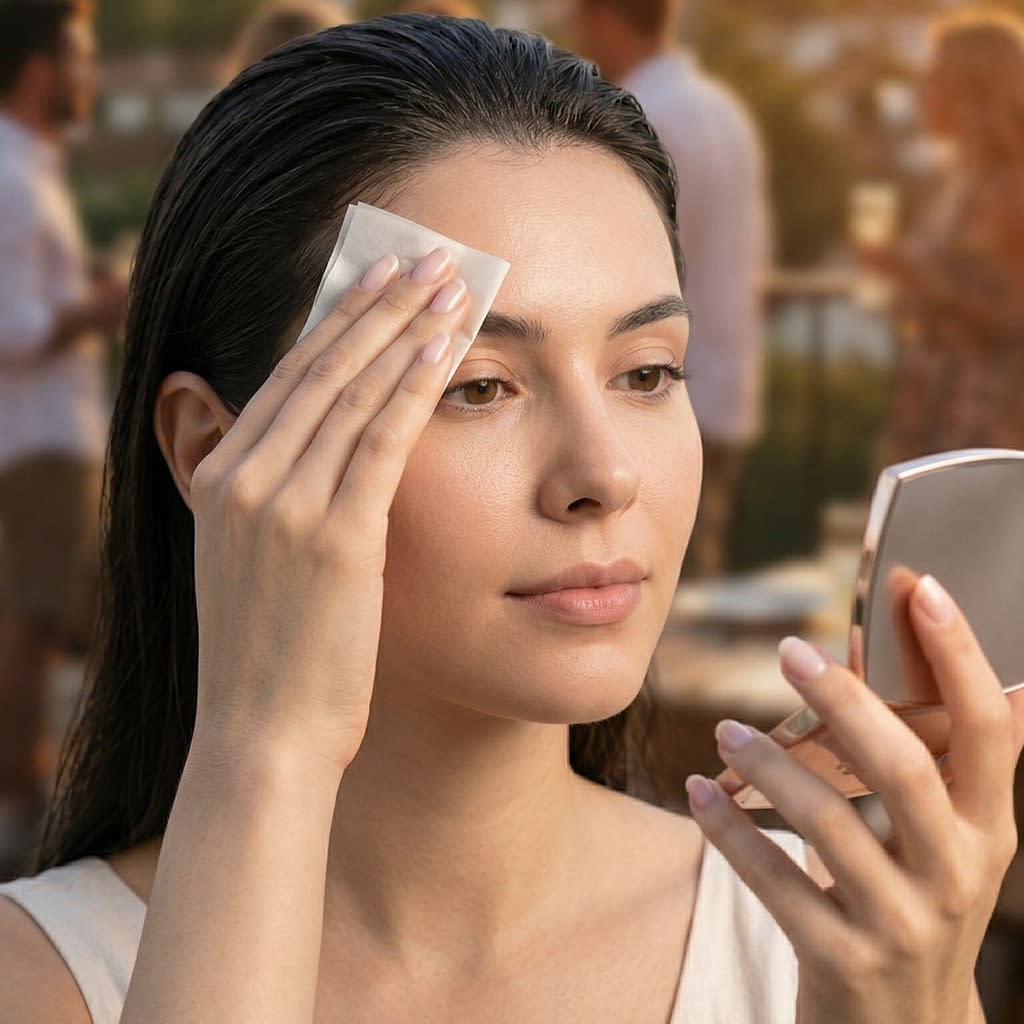 Even with the best prep, summer events can cause shine later in the day. A good touch-up routine keeps your makeup looking fresh without starting over.
