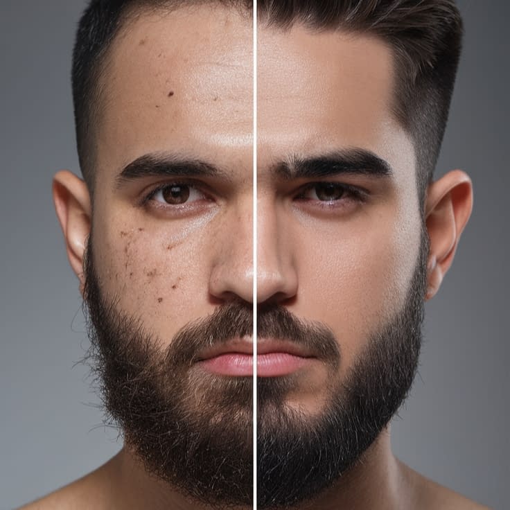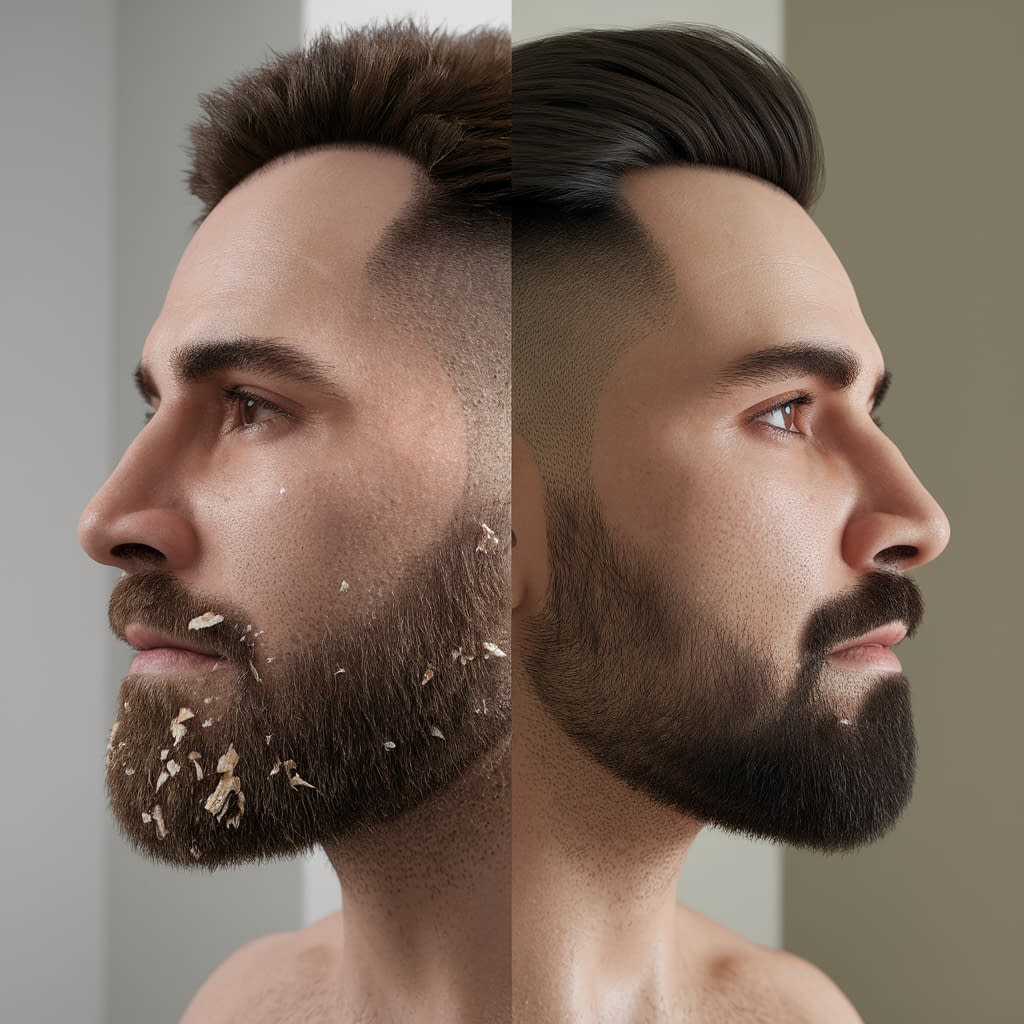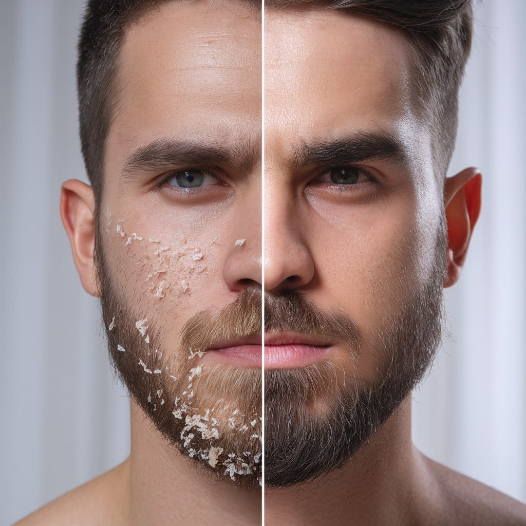 • Skin conditions such as seborrheic dermatitis (beard dandruff), eczema, or fungal infections — these need targeted treatment.