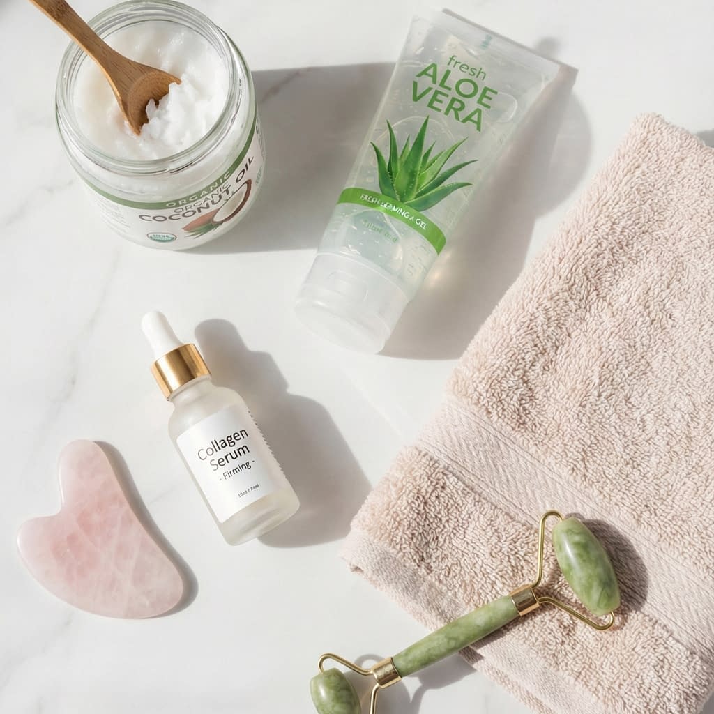 • Mix fresh aloe gel with a capsule of vitamin E (pierce capsule). Apply for 15–20 minutes; rinse or leave a thin layer overnight. Use 2–3x weekly.