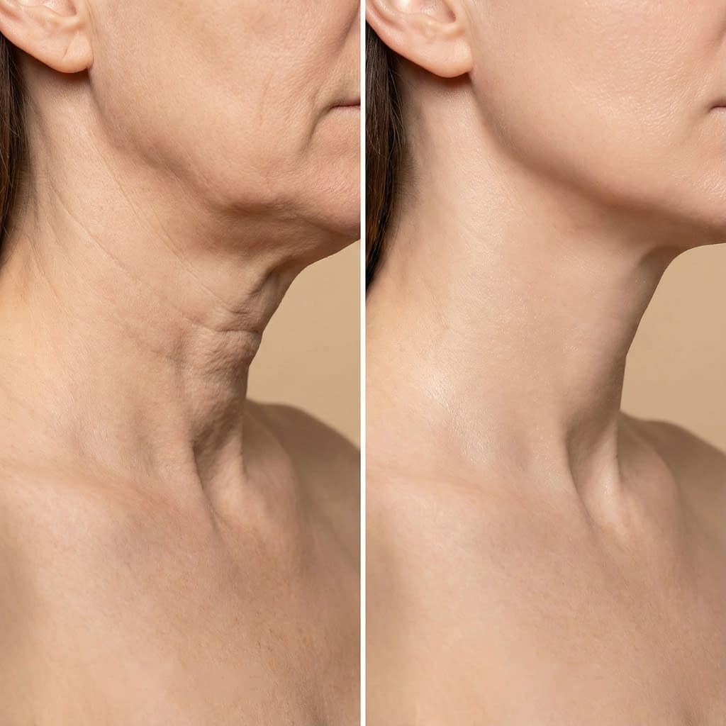 • Avoid harsh physical exfoliation on thin neck skin — use very gentle scrubs.