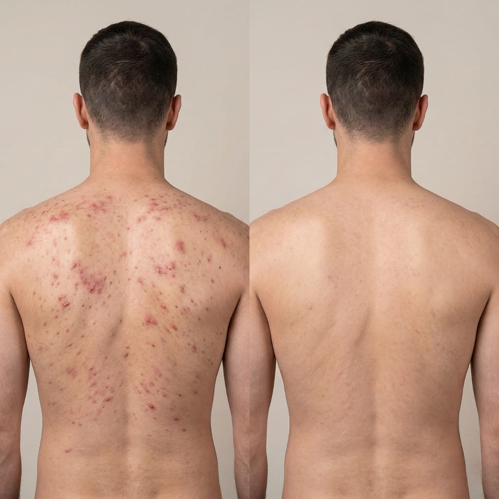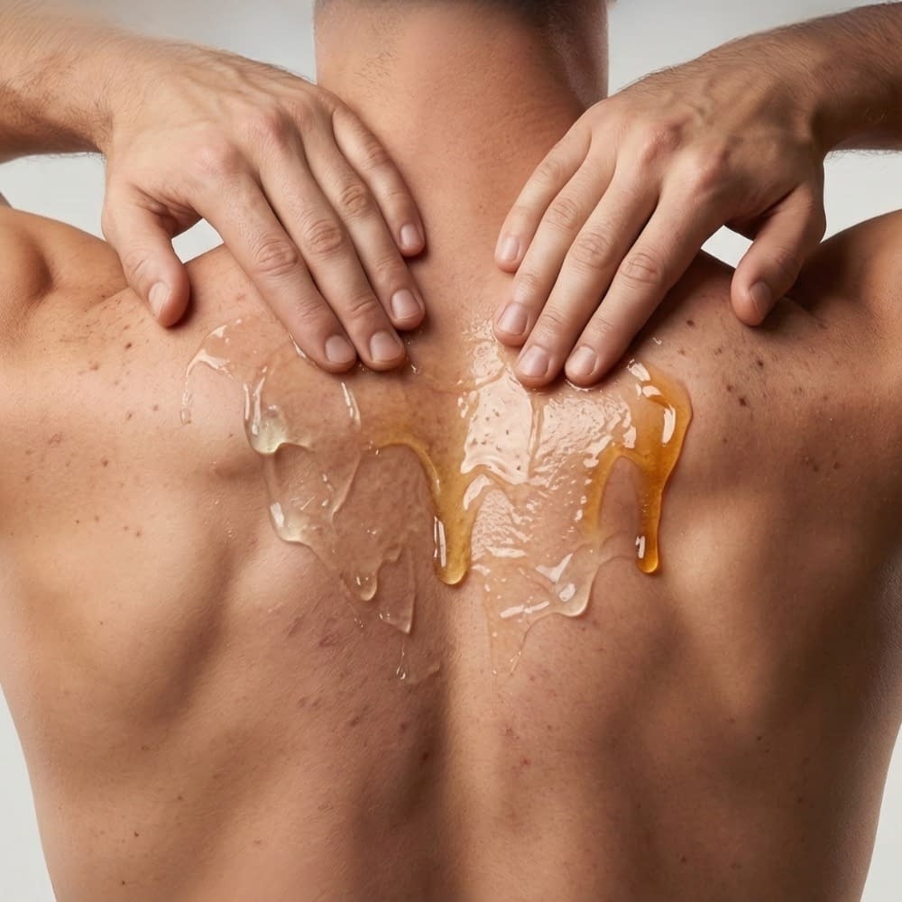 - Avoid heavy oil-based balms and coconut oil on the back if you’re acne-prone — they can trap bacteria and minerals and worsen breakouts.