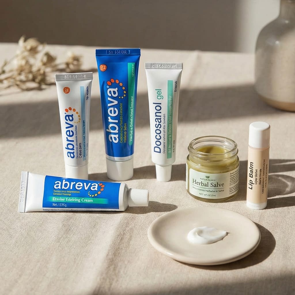 - Docosanol 10% cream (Abreva® in many regions): topical antiviral that can shorten healing when applied at first signs (follow instructions).