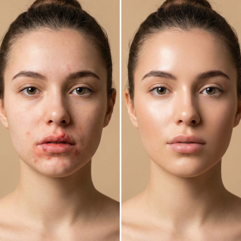 - Avoid lip trauma: skip harsh exfoliation, peels, or waxing around the mouth during risk periods.