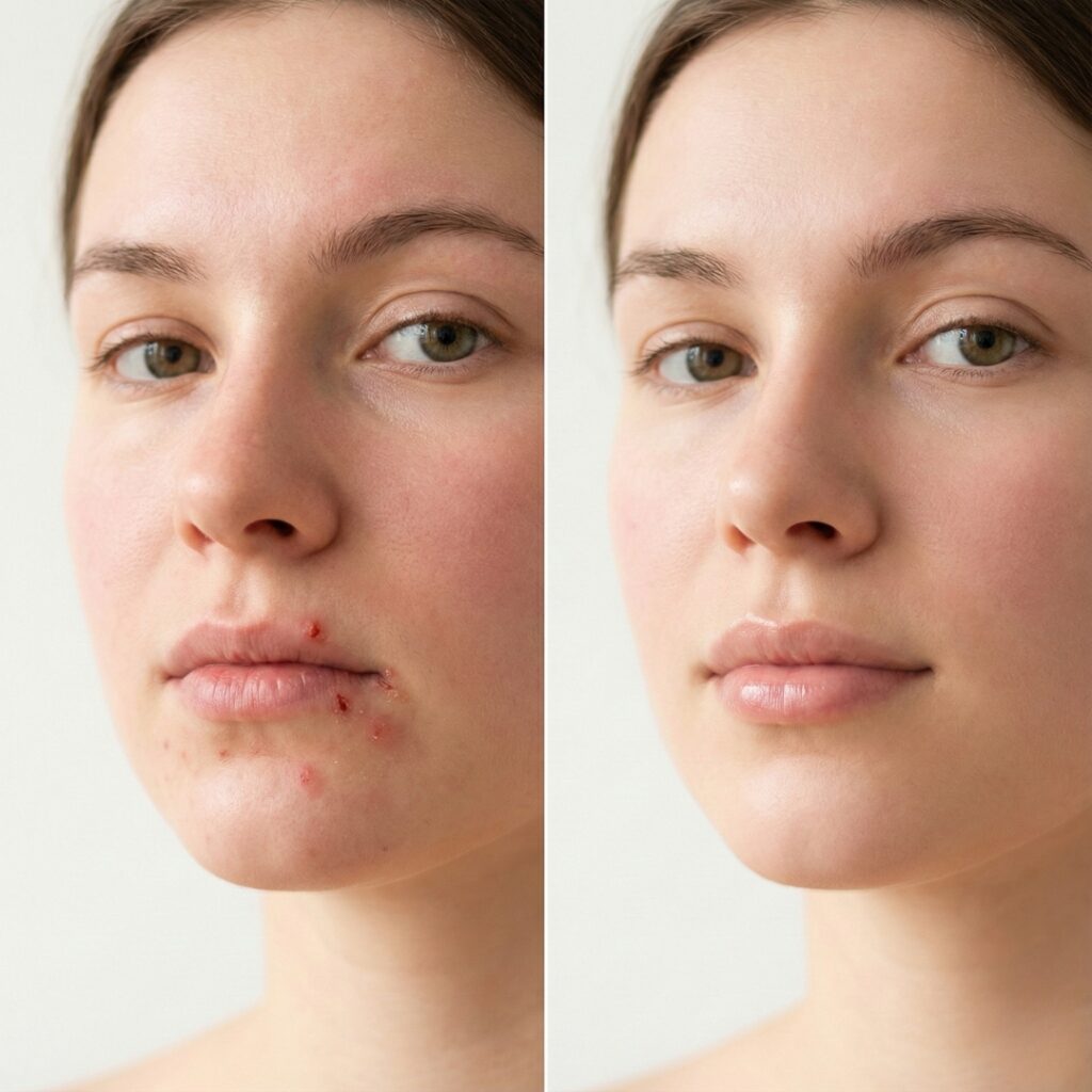 - Avoid lip trauma: skip harsh exfoliation, peels, or waxing around the mouth during risk periods.