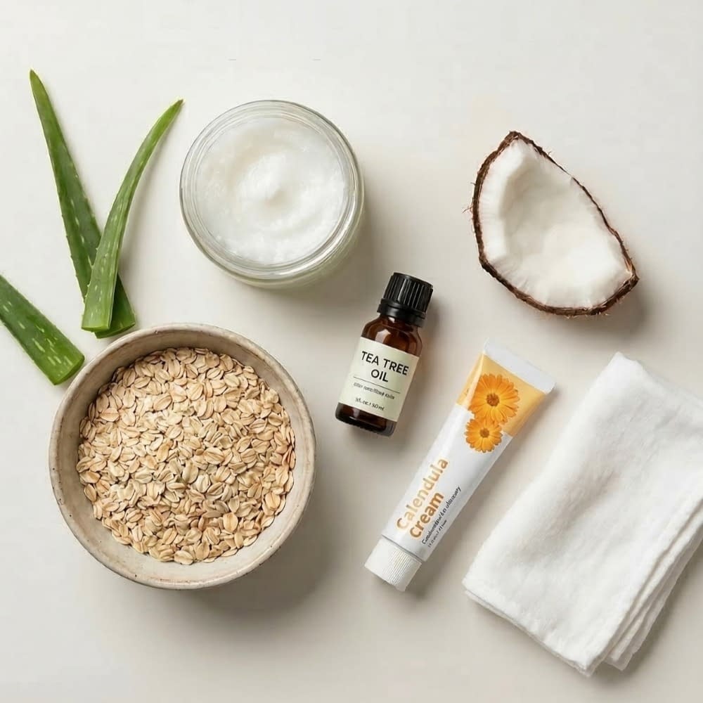 - Aloe vera — cooling and soothing for mild irritation (use pure gel, fragrance-free).