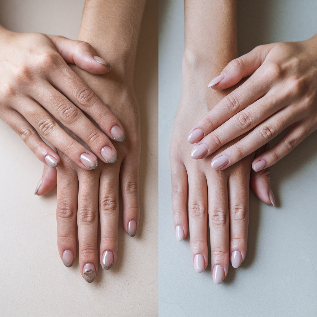 - Over-filing or over-buffing: Weakens the nail plate. Limit buffing to once every 4–6 weeks and file gently one-direction.